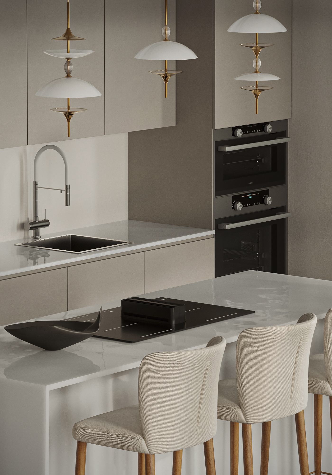 Для интерьера мы выбрали натуральные фактуры - мрамор, дерево, шерсть и металл.